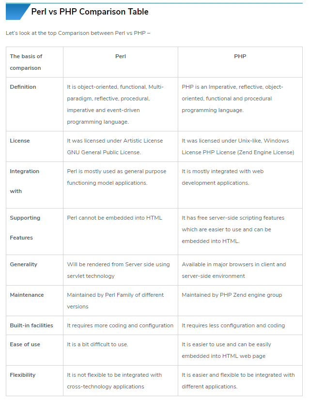 - Perl 은 범용 프로그래밍 언어로 범용적 사용목적을 가진 어플리케이션 개발에 쓰인다.